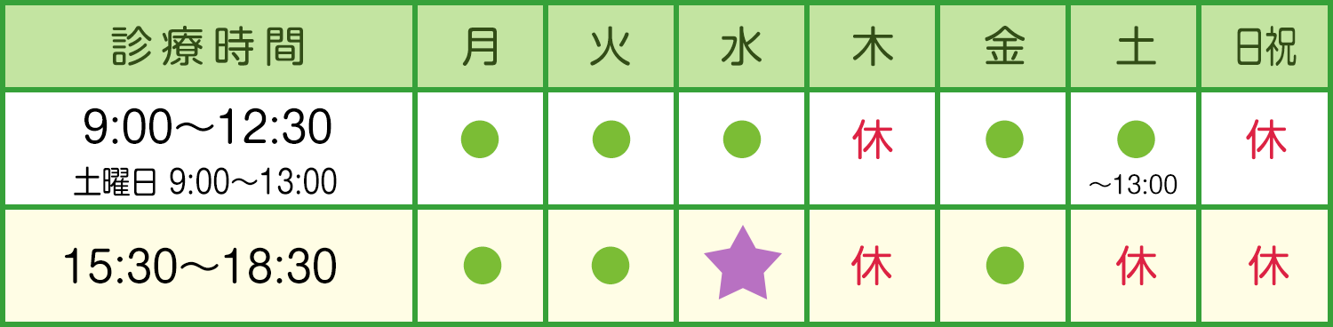 - 受付時間の一部変更について8月1日(木)より、受付時間を一部変更させていただきます。 (現在)午前診:8:30~12:30 午後診:15:00~18:30 (変更後)午前診:8:30~12:30