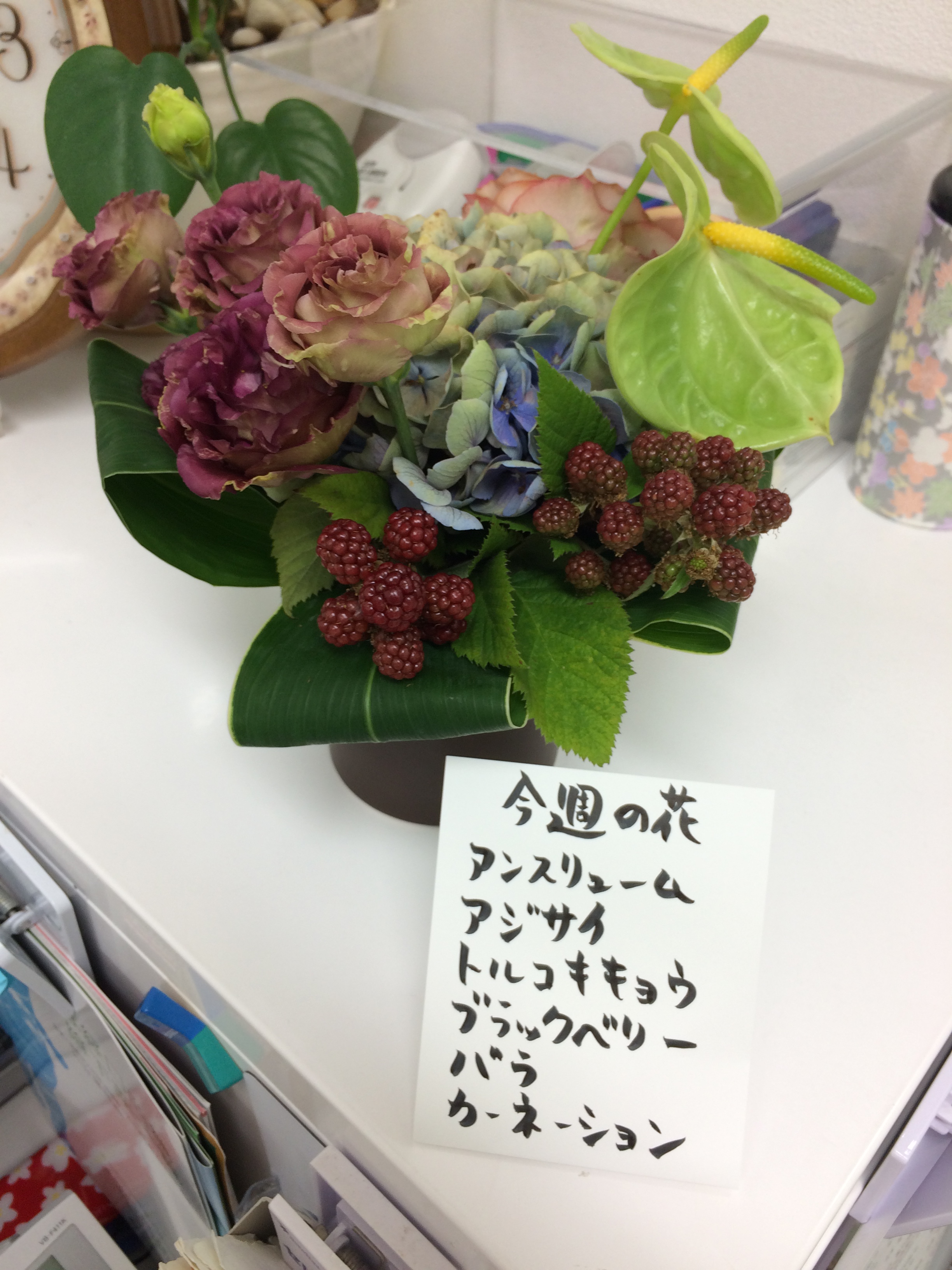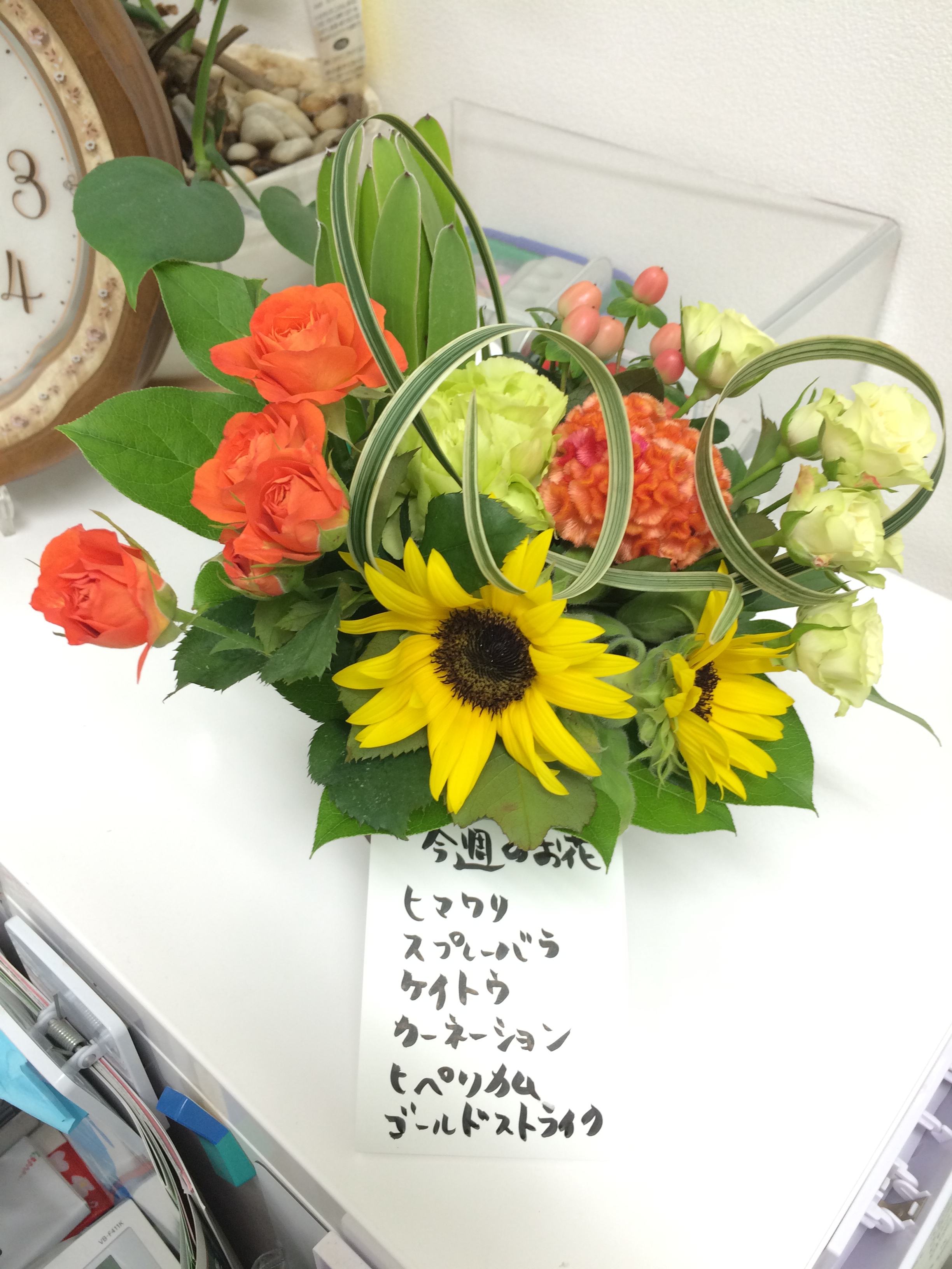 7月19日のミニアレンジ 当院では、西脇市内のイケメン店長の素敵なお花屋、フラワーショップPALさんに毎週ミニアレンジを届けてもらっています。 待ち合い、処置室、手洗い、診察室に置いていますので、少しでも癒しになればと思っています。