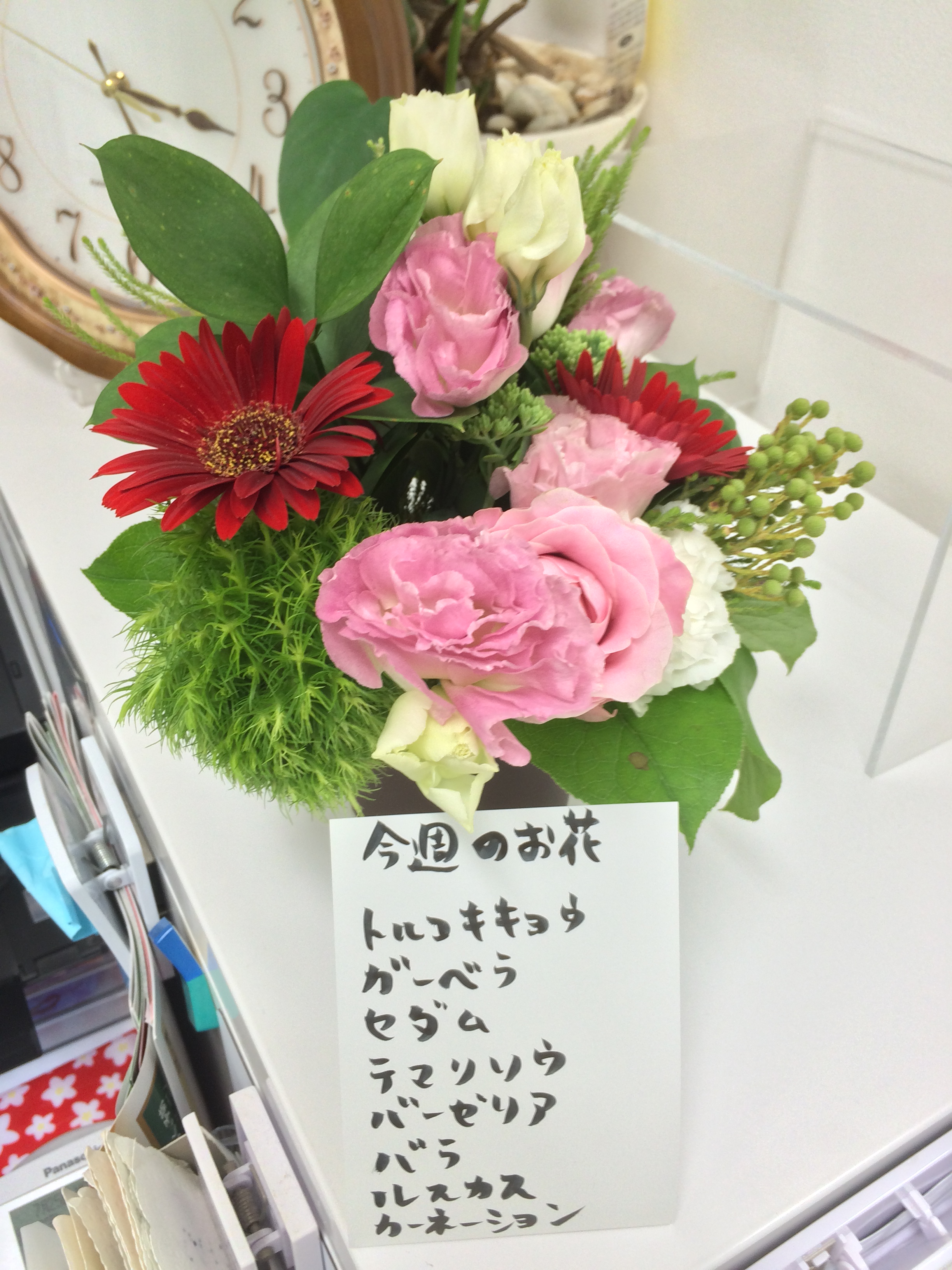7月25日のミニアレンジ Leave a reply 当院では、西脇市内のイケメン店長の素敵なお花屋、フラワーショップPALさんに毎週ミニアレンジを届けてもらっています。 待ち合い、処置室、手洗い、診察室に置いていますので、少しでも癒しになればと思っています。