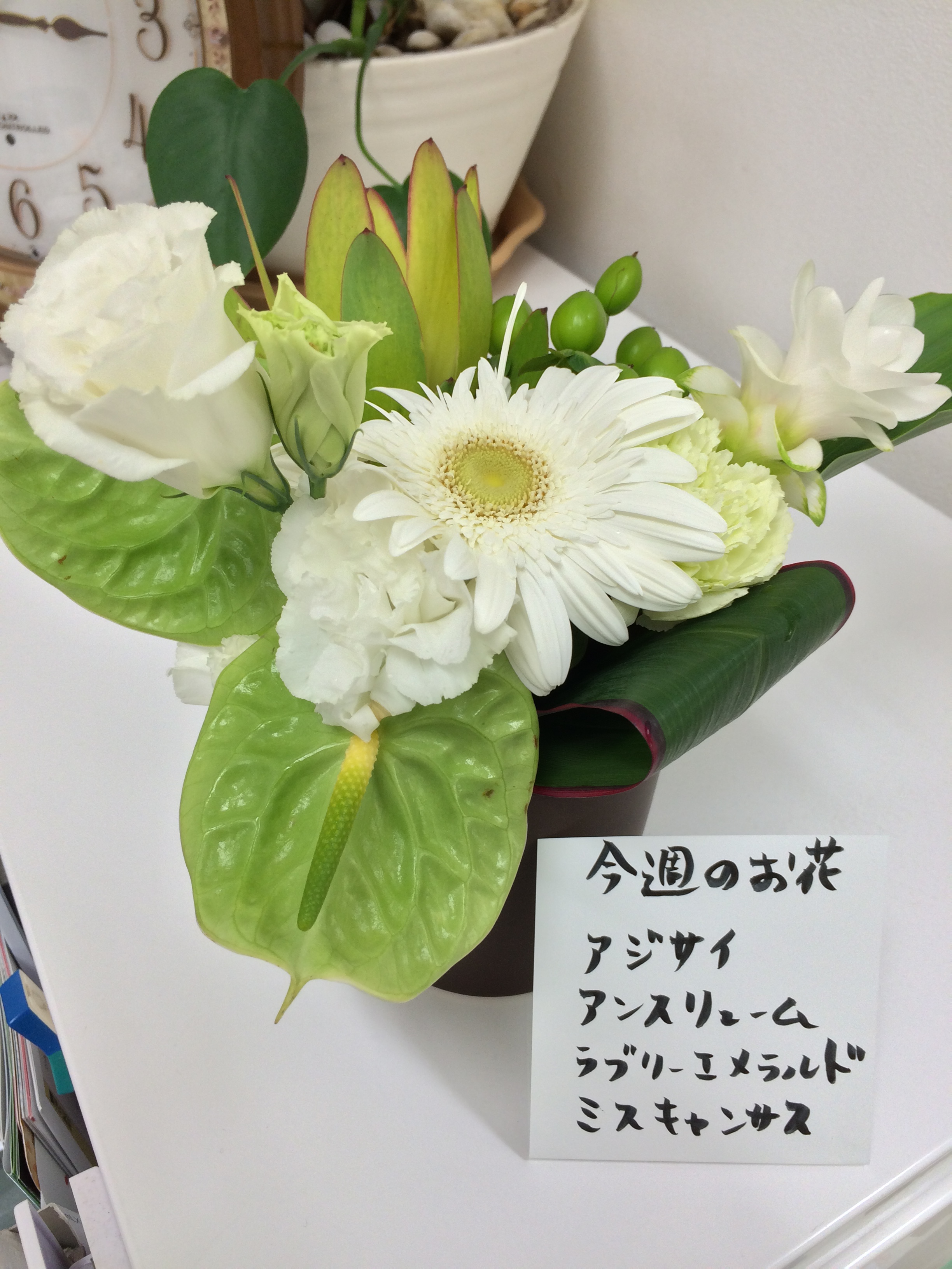 8月8日のミニアレンジ Leave a reply 当院では、西脇市内のイケメン店長の素敵なお花屋、フラワーショップPALさんに毎週ミニアレンジを届けてもらっています。 待ち合い、処置室、手洗い、診察室に置いていますので、少しでも癒しになればと思っています。