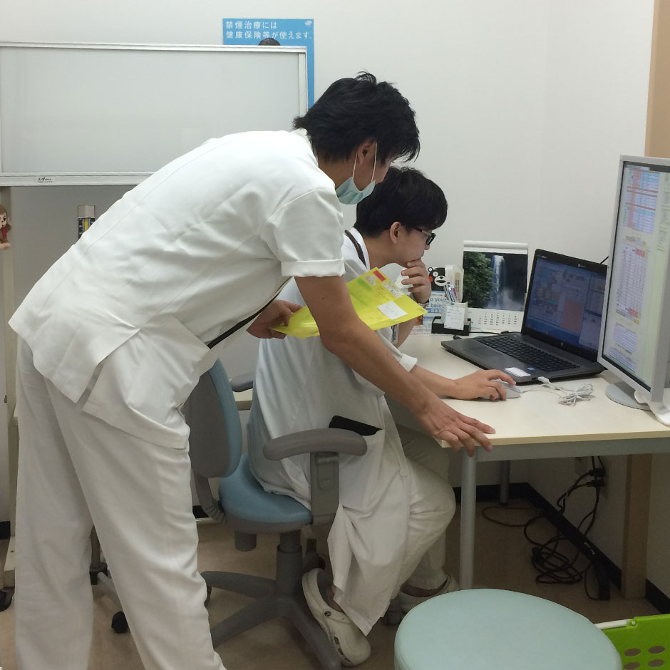 例年通り、最初は私の診療を見学してもらっていましたが、今年からは初診の患者さんを中心に積極的に診察していただきました。日本語でのコミュニケーションは全く問題ないのですが、果たして患者さんに丁寧な言葉で説明できるのか…不安に思っていましたが、敬語を駆使して、納得のいく説明をすることができており、さらに感心しました(笑)